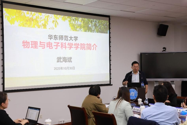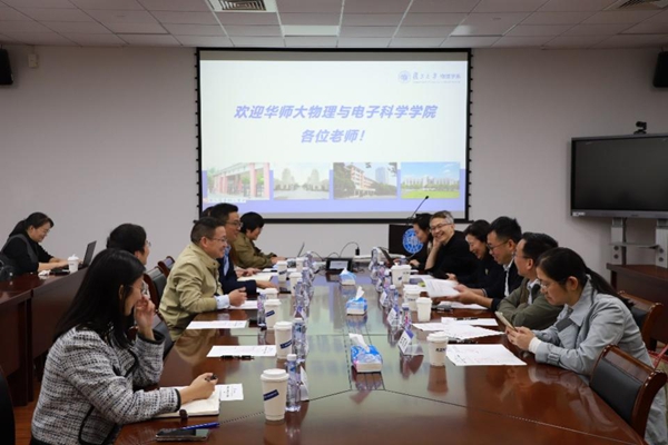为科学谋划“十五五”发展蓝图,推进校际合作交流,10月30日下午,华东师范大学物理与电子科学学院院长武海斌、党委书记李恺带队,前往复旦大学物理学系进行调研交流,副院长方俊锋、胡炳文、陈丽清,党委副书记栗蕊蕊参加调研。