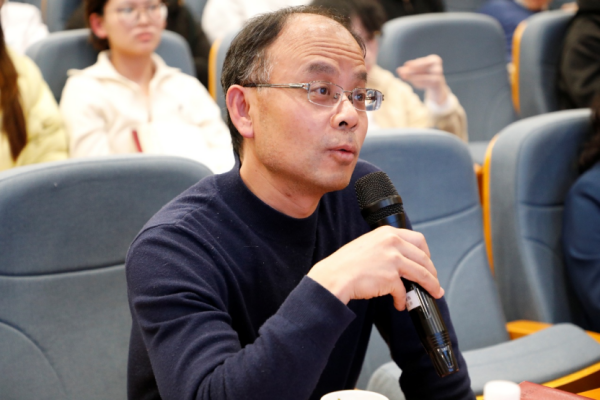在交流环节,现场师生围绕超构表面的商业应用、几何相位与共振相位的协同、可见光波段动态调控的技术挑战、超构表面在原子光学与集成光学中的应用潜力等话题踊跃提问,周磊教授对师生们的提问给予细致解答,现场学术气氛热烈。
