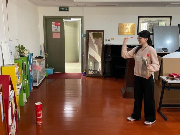 投壶游戏区域,学子们各显身手。大家凝神静气,瞄准投壶,每当箭矢应声入壶,便激起一片掌声与欢笑。对于常年埋头实验室的同学们来说,投壶游戏不仅提供了舒展身心的机会,更在欢歌笑语中增进了同窗情谊,让大家在科研之余感受到浓浓的年味与活力。