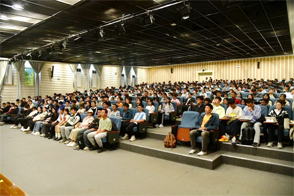 物理与电子科学学院院长武海斌教授以《理铸国重器 物格人浩然》为题,带来一堂兼具思想深度、知识广度与人文温度的“第一课”,引导新生涵养家国情怀、拓宽学术视野、传承“物五”学风、锚定成长航向,为2025级新生的大学征程指引方向。活动由学院党委副书记栗蕊蕊主持。