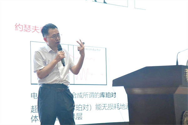 武海斌院长强调,“科技实力才是自立自强的保证”。他列举从两弹一星到中国天眼、从北斗导航到嫦娥探月,一系列大国重器的背后,都印证了物理学的关键支撑。以2025年诺贝尔奖成果为例,John Clarke、Michel H.Devoret和John M.Martinis三位科学家在电路中发现宏观量子力学隧穿效应与能量量子化现象。武海斌院长生动形象地阐释了宏观量子隧穿、能量量子化等核心原理,强调针对经典计算机无法胜任的、物理机制尚不清楚的若干重要物理问题,开发专用量子计算机,针对某些特定问题展现超越经典的计算能力,实现“量子优越性“。同时,武海斌院长还向新生展示了时间和位置精密测量这一前沿领域的研究成果。武海斌院长鼓励新生不惧科研挑战,勇攀科学高峰,积极投身科研,为国家发展贡献青春力量。