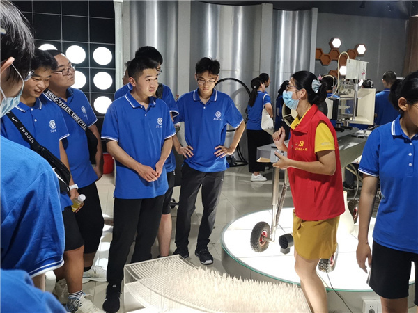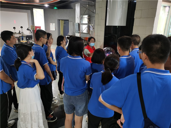 讲解结束后,支部党员教师带领新生分批参观了物理实验教学中心的探索实验室。在实验室内,同学们观察、操作、讨论丰富有趣的物理实验和物理现象,感悟物理之美和物理实验的精巧设计。